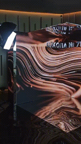 Это плоская прямоугольная фотозона с динамическим фоном. Мы сами заранее подбираем тематические изображения и подстраиваем фон под каждого ученика, подчеркивая его индивидуальность. На выходе получаются живые и яркие фотографии